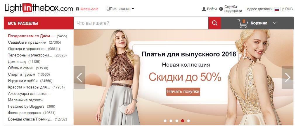 LightInTheBox je najpouzdaniji dućan iz Kine s besplatnim oblikom isporuke, sa sjedištem u Pekingu 2007. godine. To kategorički nije pogodan za ljubitelje freebies i velikih akcija - potonji nisu često ovdje, a cijene robe su visoke. Međutim, točnost opisa i prezentacije partija svidjet će se svima (može se osjetiti kvalitetan rad na ruskom prijevodu).