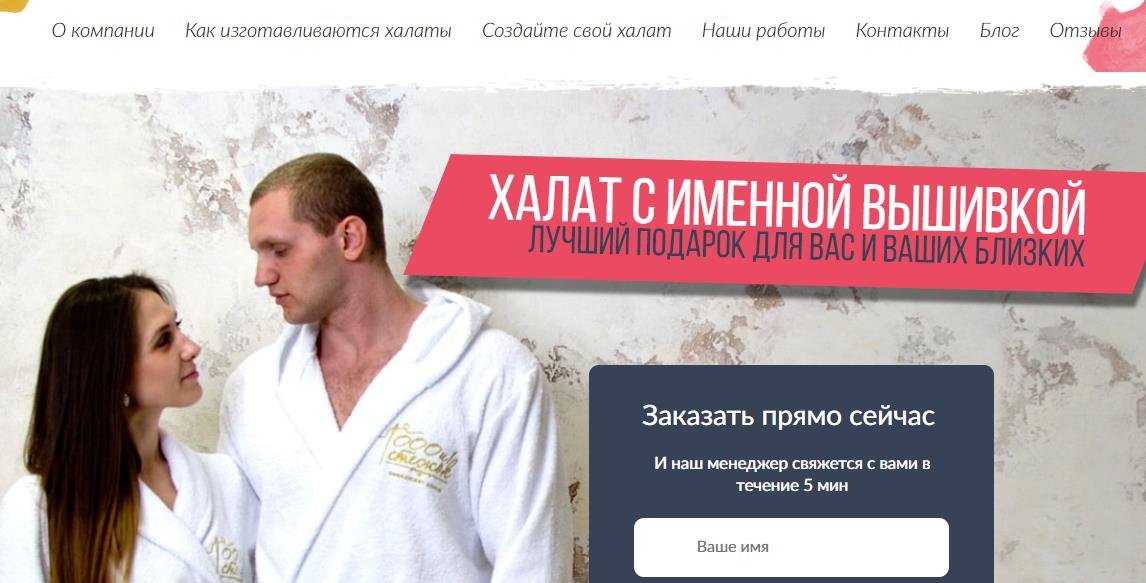 Osobna haljina - veliki dar za svaku prigodu. Vez se primjenjuje posebnom tehnologijom i čvrsto se drži. Osim ogrtača u studiju, možete naručiti kupanje, krstitke, ručnike, pa čak i polo. Dostava u cijeloj Rusiji je besplatna. Prednosti usluge uključuju kratko vrijeme proizvodnje, dostupnost besplatne telefonske linije, optimalne cijene, visokokvalitetne proizvode. Nedostaci nisu pronađeni.