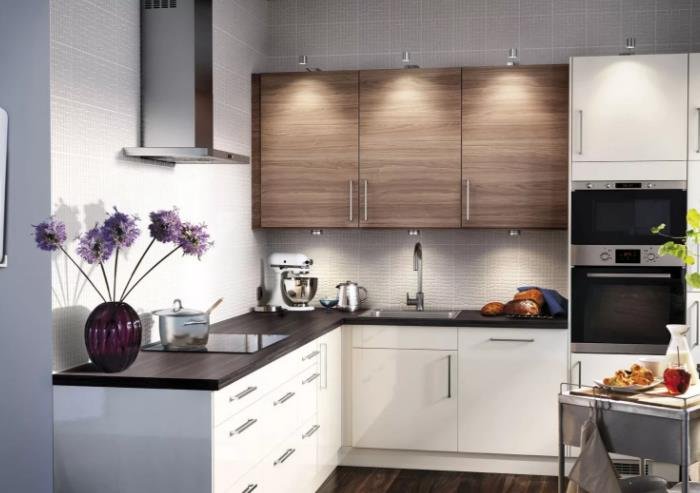 - Funkcionalnost. Prisutnost više odjeljaka, automatsko zatvaranje ladica, mogućnost integriranja peći ili perilice posuđa u kuhinjski namještaj - sve to će stvoriti dodatnu udobnost.