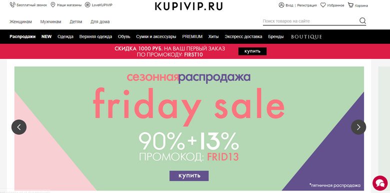 Online trgovina KUPIVIP specijalizirana je za prodaju luksuzne odjeće. Najekskluzivnije robne marke, noviteti u modnoj industriji, veliki izbor torbi - sve to možete pronaći na KUPIVIP-u. Usput, kada se pretplatite na newsletter, dobit ćete 500 bonus rublja za kupnju. Postoji mogućnost besplatne dostave kurira, ali s iznosom narudžbe većom od 5999 rubalja. Napravite kupnju i platite za to može biti nekoliko klikova na samoj web-lokaciji. Sučelje je vrlo jednostavno i jasno - sve je kategorizirano, a svaki proizvod ima odgovarajući opis.