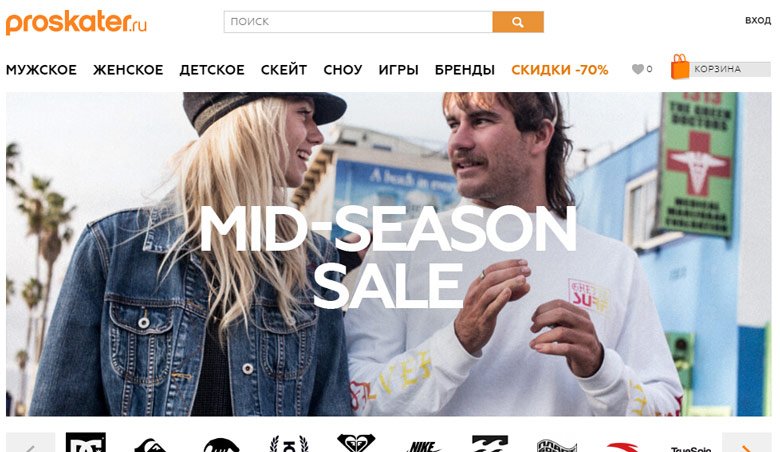 Omladina online trgovine Proskater.ru je širok raspon odjeće europskih brandova. Na modnoj pisti nema ekskluzivnih brandiranih artikala, jer Glavna specijalizacija resursa je odjeća s ukusom za ljude koji vode aktivan životni stil. Tenisice, tenisice, skateboards i svu dodatnu opremu za njih, kao i sve za snowboarding (zaštitu, odijela, cipele) možete pronaći u katalogu trgovine. Osim toga, ovdje su predstavljene ženska i dječja odjeća, obuća, pribor.