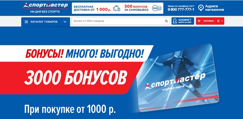 Sportmaster ima maloprodajne objekte u gotovo cijeloj Rusiji. Ova popularna mreža nudi veliki izbor sportske odjeće za muškarce, žene i djecu, kao i široku paletu različitih sportskih proizvoda. Svi klijenti mogu se prijaviti za klupsku karticu i dobiti bonuse od svake narudžbe, a kasnije ih zamjenjuju za popust. Prilikom registracije daruje se do 500 bonus rubalja. "Sportmaster" je razvio svoju mobilnu aplikaciju za praktičnost u odabiru stvari, kao i njihovo plaćanje. Katalog predstavlja najpopularnije sportske marke: Columbia, Nike, Skechers, Demix itd.