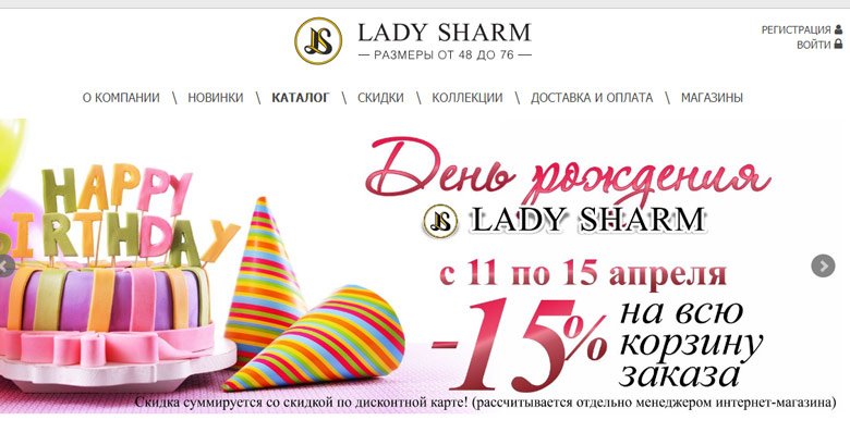 Online trgovina „Lady Charm“ jedna je od najboljih u Rusiji za prodaju odjeće velike veličine. Kupci nakon dobivanja narudžbi ostavljaju samo pozitivne povratne informacije. Raspon veličine počinje od 48, a završava u veličini 76. Glavna značajka usluge je veliki izbor ženske odjeće. Katalog sadrži mnoge modele suknji, haljina, jakni, jakne, bluze, hlače, pa čak i kapute od ovčje kože. Pretraživanje se vrši na temu garderobe, boje, veličine i cijene.