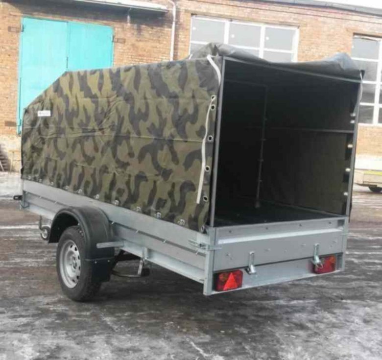 Posebno je popularna obitelj univerzalnih prikolica Krepysh. Model 821303 razlikuje univerzalnost, jednostavnost korištenja, dobre performanse i pristupačnu cijenu. Ako je potrebno, možete povećati ploču ili podesiti luk tendom.
