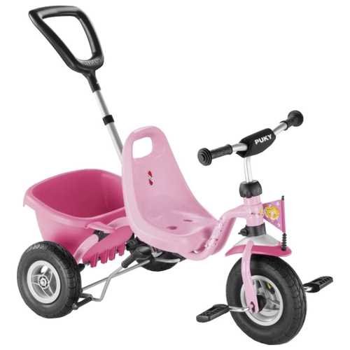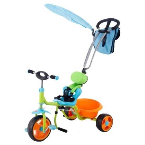 Tricikl s ručkom roditeljske kontrole je odlična opcija za prvo vozilo za aktivnu djecu do tri godine, koja još uvijek ne znaju kako se pedalirati i upravljati, ali propuštaju uobičajena invalidska kolica. Tri kotača, od kojih su dva pozadi paralelna jedan s drugim, osiguravaju dovoljnu strukturnu stabilnost čak i za bebe od šest mjeseci. Međutim, češće se bebe naviknu na prvi bicikl u dobi od godine.