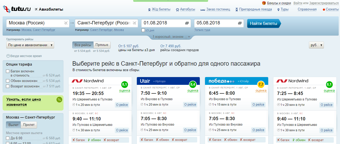 Popularna usluga rezervacije karata za željeznice pokrenula je novi resurs za one koji radije putuju avionom. Odlikuje se praktičnom navigacijom, promišljenom tražilicom i mogućnošću da brzo i profitabilno kupite kartu u bilo kojem smjeru. Na stranicama se navode datumi interesa (moguće uz snimanje sljedećih 3 dana), broj i dob putnika, kao i put. Usput, ovdje je lako napraviti složenu rutu, uključujući nekoliko letova i gradova odjednom. Prilikom izdavanja rezultata, naznačit će se ocjena jedne ili druge zrakoplovne tvrtke, sve informacije (pravila prtljage, otkazivanja, vrijeme putovanja).