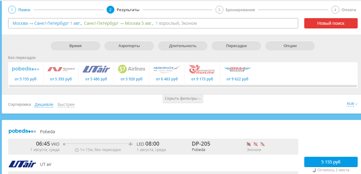 - Tražilica treba biti što jednostavnija i učinkovitija. Da biste to učinili, mora sadržavati prikladne filtre, tablice za usporedbu i, što je najvažnije, brzi pristup svim informacijama o određenom letu.