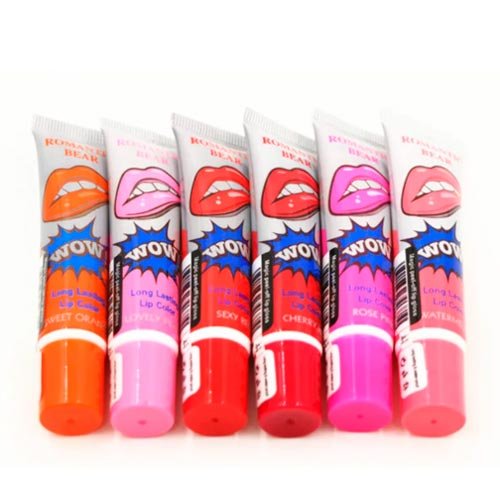 Linija dugotrajnih boja za usne WOW sadrži ekstremno bezopasne tvari, uključujući kolagen, vitamine, kokosovo ulje, ekstrakt brusnice. Kupci smatraju ovaj alat izvrsnom alternativom za tetoviranje. Uz ton romantičnog medvjeda, možete popiti kavu, pojesti ručak, poljubiti se. I dalje ostaje na usnama u svom izvornom obliku. Kineski proizvodi se ne prodaju putem maloprodajnih objekata. Alat možete naručiti putem Interneta. Važno je čuvati se krivotvorina. Cijena cijevi je 990 rubalja.