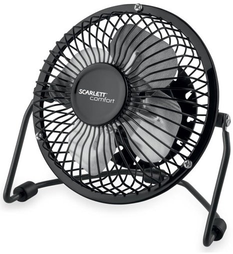 Najbolja opcija iz najjeftinijeg segmenta bio je Scarlett SC-1171 ventilator. Model se okreće oko 90 stupnjeva u odnosu na horizontalnu osovinu i može raditi u 3 načina puhanja. Još jedan proračunski model, Scarlett SC-DF111S99, može se povezati putem USB priključka. Zaštitna rešetka izrađena je od visokokvalitetnog metala. I premda u ovom modelu nema funkcije rotacije, možete podesiti razinu nagiba.
