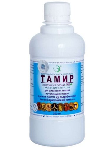 Domaći proizvođač LLC NPO EM CENTER proizvodi najpopularnija sredstva za čišćenje na ruskom tržištu. Mikrobiološki sastav Tamira je mješavina različitih vrsta bakterija. Neki od njih uništavaju celulozu, drugi akumuliraju dušik, a drugi su odgovorni za fotosintezu. Alat se sastoji od prirodnih komponenti koje vam omogućuju da ih primijenite u različite svrhe. Osim za upotrebu u septičkim jamama i septičkim jamama, alat je pogodan za ubrzano kompostiranje i održavanje suhih ormara. Svojstva lijeka procjenjivali su vlasnici poljoprivrednih gospodarstava, voditelji poduzeća koja prerađuju poljoprivredne proizvode.
