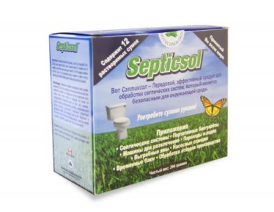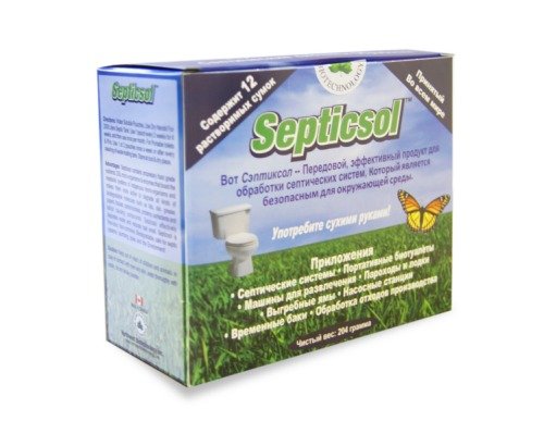 Kanadski proizvođač Septicsol specijaliziran je za proizvodnju proizvoda za čišćenje ljudskog otpada. Bakterije su sposobne dugo vremena prerađivati organsku tvar, zbog čega se akumuliraju u septičkoj jami. Stoga trebate slijediti preporuke prilikom korištenja. Lijekovi su dostupni u vrećicama, biogranulama, postoje tekući koncentrati, tako da potrošač može odabrati najprikladniju opciju za njega. Asortiman uključuje univerzalna sredstva za septičke jame i visoko specijalizirane tekućine za dno ili gornji spremnik suhog WC-a.