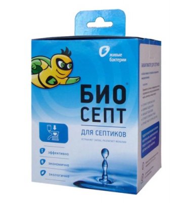 Učinkovito sredstvo za septičke jame i septičke jame proizvodi francuski proizvođač Biosept. Gotov proizvod izravno se isporučuje u Rusiju, a ambalaža se proizvodi u našoj zemlji. Stoga su upute za uporabu priložene na ruskom jeziku. Bakterije učinkovito razgrađuju organske spojeve, a preporuča se za uporabu mnogim proizvođačima septičkih jama. Proizvodni program tvrtke uključuje bioaktivatore za septičke jame, tresetni toalet, kompost, itd.