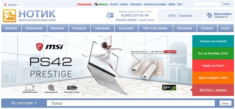 Prema Yandex tražilici, to je Notik online trgovina koju kupci najčešće traže. To ne čudi: na stranici su prikazana prijenosna računala od 9 proizvođača, podijeljenih u kategorije. Pronalaženje pravog modela ne oduzima puno vremena zahvaljujući sposobnosti da se precizno odrede kriteriji: cilj (igra, profesionalni itd.), Karakteristike, veličina zaslona i mnoge druge. Jedinstvena značajka je odabir prijenosnog računala. Korisnik prolazi kroz malu anketu i dobiva rezultate s najboljim opcijama.