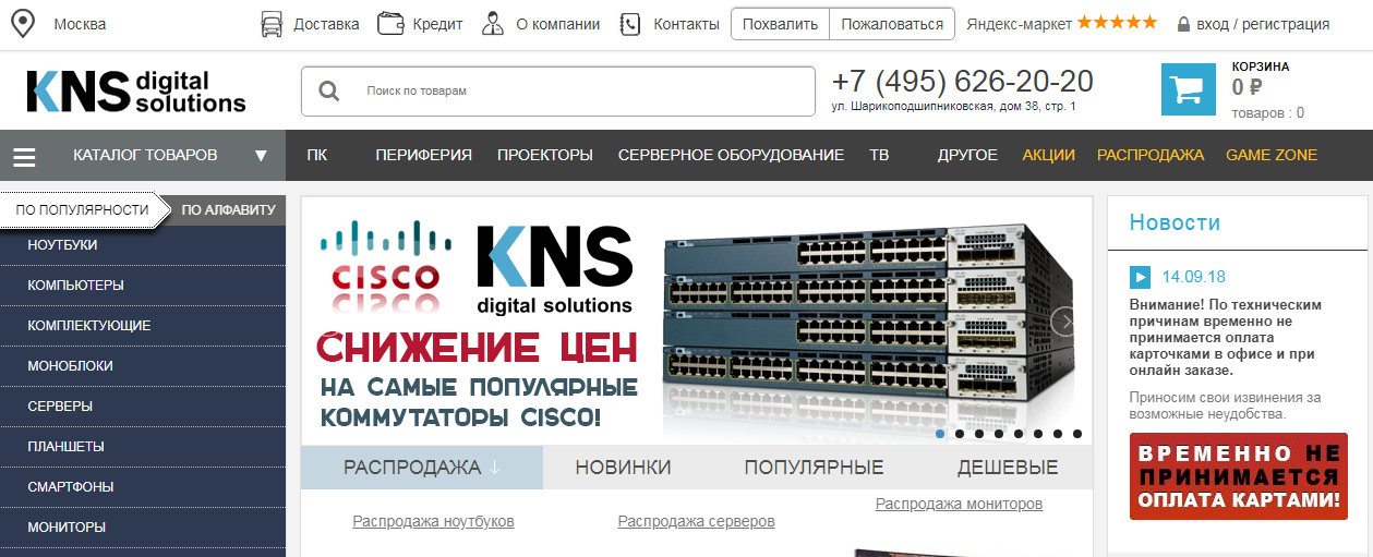 KNS se pojavio u Moskvi 1997. i za to vrijeme uspio je postati službeni partner desetaka proizvođača prijenosnih računala. Sudeći po primjeni tvrtke i recenzija na Yandex.Market, sva roba je na lageru, tako da narudžbe stignu u kratkom vremenu. Prijenosna računala podijeljena su u kategorije prema svrsi, na primjer, igre, uredski, poslovni. Na stranici su dostupni modeli različitih cjenovnih kategorija, od jeftinih do ekskluzivnih za stotine tisuća rubalja.