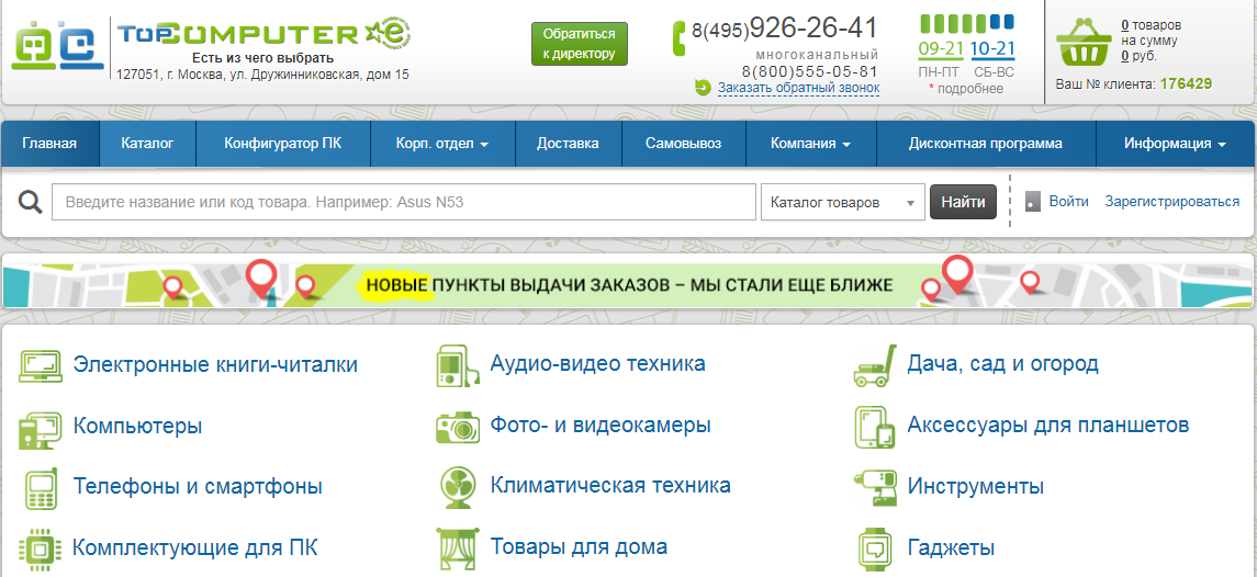 Top Computer je relativno mala trgovina koja nudi prijenosna računala 17 proizvođača s najboljim uvjetima isporuke u Moskvi. Gotovo sve narudžbe u pojedinim zonama isporučuju se besplatno, ostalo je prilično jeftino, a cijena uključuje i dizalo do vrata. Prijenosna računala podijeljena su u kategorije prema karakteristikama, proizvođaču i nekoliko dodatnih kriterija.Zanimljiv "čip" je pokazatelj dostupnosti: korisnik odmah vidi da li je proizvod na zalihi i koliko će morati čekati na isporuku.