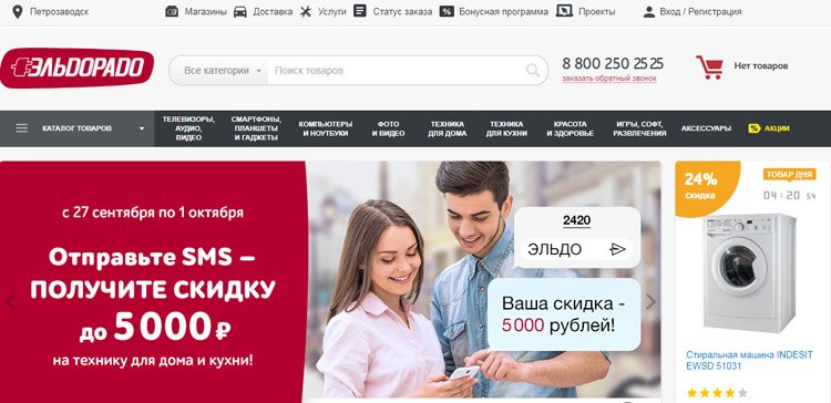 Eldorado ima veliki broj promocija, bonusa i programa za klijente, prikladne ponude su napisane pored svakog prijenosnog računala. Web-lokacija može usporediti slične modele, dodati ih u favorite. Općenito, pouzdanost i ugled Eldorada je izvan sumnje, njegov izgled u ocjeni nije iznenađujući. Međutim, tvrtka ima problema s isporukom: ponekad morate čekati kurira za dugo vremena, oni mogu donijeti pogrešan model ili samo brkati narudžbe.