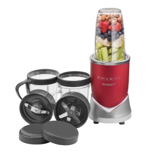Scarlett SC-JB146P10 je jeftin stacionarni model miješalice. Savršeno za putovanje, moći ćete primijetiti više dimenzionalnog kolegu. Snaga - 1000 W, ali zbog veličine može raditi malo slabije nego što je navedeno.Opremljen je dodatnim načinima rada: cijepanje leda, pulsni mod za čvrste proizvode. Dolazi s dvije čaše s poklopcima za pohranu hrane.