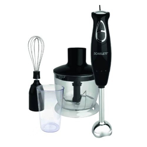 Na primjer, Scarlett SC-HB42F05 je prava udobnost, a ne potopni miješalica. Zadržati ga u ruci je zadovoljstvo. Pogodan za one koji trebaju dugo vremena za rad s uređajem u jednom trenutku. Možda mu se ne sviđa dužina žice, ali to se lako može riješiti produžnim kabelom. U recenzijama, svi su iznenađeni njegovom niskom cijenom, budući da će njezin aparat raditi s interesom. Snaga - 650 W, postoji pulsni mod i 2 brzine.