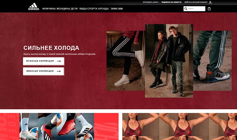 Pokazatelj povjerenja može se smatrati činjenicom da su adidas proizvodi na sajtu privukli poznate ruske sportaše i popularne medije. Tako, na primjer, svjetska klasa gimnastičar Samira Mustafayeva, diže filmska zvijezda Lukerya Ilyashenko i moderni video bloger Mariana Roh djeluju kao modeli ženske odjeće. Dizajn resursa odlikuje se vizualnom konciznošću i intuitivno jednostavnom navigacijom. Za bolju analizu proizvoda na stranicama se ne koriste samo statične slike, nego se postavljaju i video zapisi kojima programeri mogu naglasiti praktičnost opreme što je više moguće.