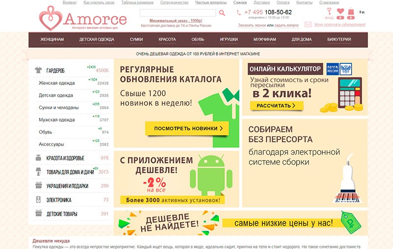 Site Amorce ima dvije nesumnjive prednosti - to je prilično velik izbor odjeće i niske maloprodajne cijene, usporedivo s troškovima skupnih kupnji. Trgovina radi izravno s proizvođačima pa ima mogućnost postavljanja umjerenih oznaka na svojim proizvodima. Tvrtka jamči da će samo najotmjeniji noviteti stići na virtualni „brojač“, ali se većina modela još uvijek može svrstati u stavke svakodnevnog WC-a.
