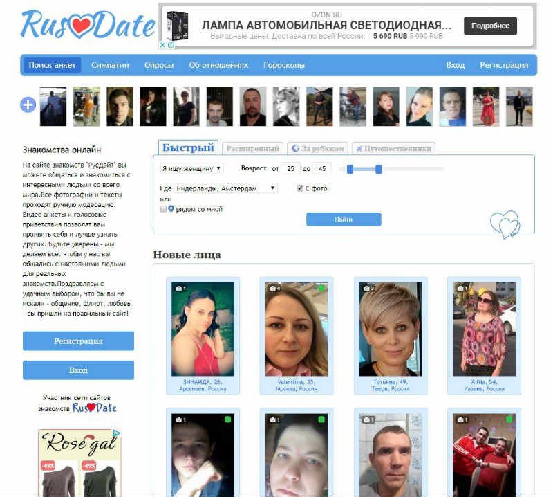 Rusdate djeluje od 2008. godine i smatra se starim poznanstvom u području online dating-a. Stranica ima stotine tisuća upitnika, uključujući ljude različitih dobi iz različitih zemalja. Dobra reputacija stranice osigurala je naprednu funkcionalnost i nekoliko jedinstvenih "čipova". Dakle, sve fotografije i tekstovi se ručno provjeravaju, što donekle usporava registraciju, ali osigurava odsustvo lažnih računa. Ako bilo koji profil pokazuje sumnjivu aktivnost ili je primljeno mnogo prigovora, administratori ga odmah blokiraju.