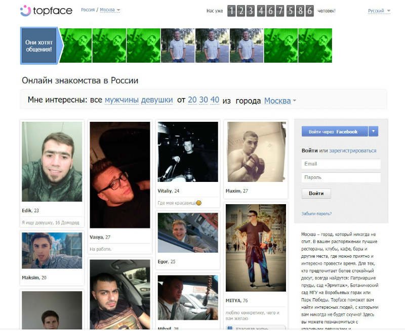 Sve do nedavno, Topface je bio aplikacija Vkontakte mreže, a sada je postala punopravna stranica. No veza s roditeljskom stranicom je ostala, au profilu sudionika označena je veza na stranicu VK. Ljudi se ovdje "druže", većina publike je usmjerena na Wirtha, netko traži intimne susrete u stvarnom životu. S obzirom na broj registriranih profila (123 milijunaiz različitih dijelova svijeta), možemo pretpostaviti da postoje ljudi s prilično pristojnim željama, ali ipak su manjina.