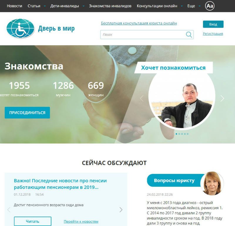 Svaki 10. stanovnik Rusije ima jednu ili drugu skupinu invaliditeta. Izuzetno je teško ljudima s ograničenom pokretljivošću izaći na ulicu i još je teže stvoriti odnose s osobom koja nije iz vlastitog okruženja. Internetski portal "Vrata u svijet" vrlo je prikladan komunikacijski alat, uz pomoć kojeg osobe s invaliditetom dobivaju priliku za samoostvarenje, društvenu prilagodbu pa čak i sretan brak.