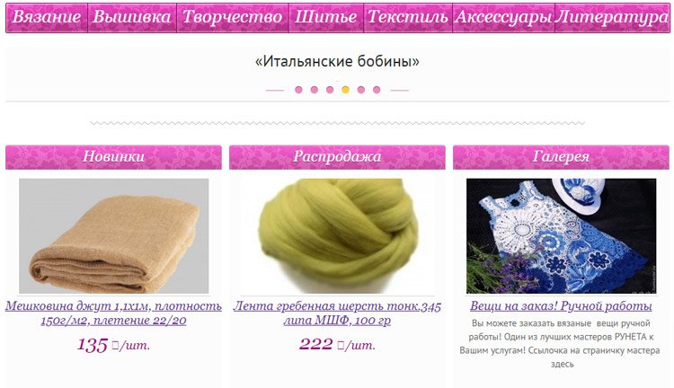 Otvara rang najboljih placers pređe, specijalizirana za strane proizvode. On je jedan od rijetkih koji prodaje proizvode američke marke Madelinetosh. Mnogo je ograničeno, boje su ekskluzivne, tako da je cijena prikladna. Postoji više pristupačnih njemačkih, ruskih i peruanskih proizvođača. Trgovina daje kratke informacije o proizvodu, ukazuje na prisutnost certifikata i povijesti tvrtke. Tvrtka redovito dopunjuje asortiman i to izvješćuje u vijestima. Nema promocija i prodaje, ali postoje likvidacije stanja s popustima do 70%.