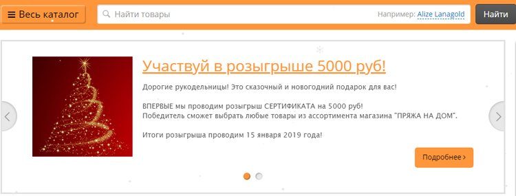 5 rozeta odmah privlači pažnju ugodnog mjesta s podjelom pređe na proizvođače, najboljim ponudama, prodajom i novim dolascima. Tvrtka je detaljno opisala prednosti registracije u trgovini, metode naručivanja i isporuke, nemoguće je zbuniti se. Korisnici su kreirali raspravu na forumu skupnog kupnje kako bi dobili najveći popust od 20%. Dodatni bonusi vrijede za potpuno plaćanje unaprijed. Osnova asortimana su pređa iz Njemačke, Bugarske, Danske i Španjolske, Turske, Rusije i Kine zastupljene su u manjim količinama.