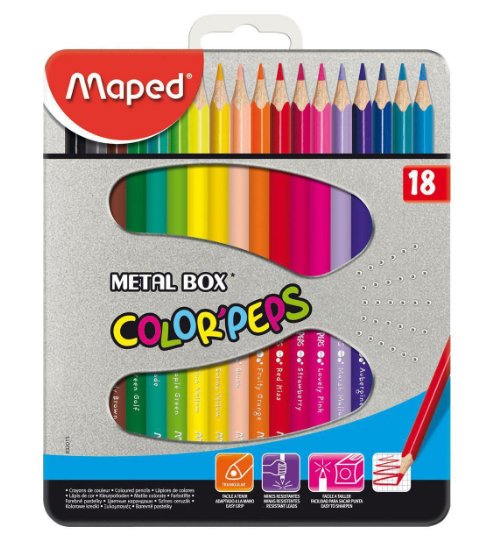 Maped se smatra najboljom tvrtkom među jeftinim proizvođačima. Olovke dobro prenose boje, ne grebu papir i ne boje se brusača i noževa. Olovka je dovoljno jaka, ne prsne se kada se pritisne, iako se slomi kad padne. Olovke za djecu trokutasto tijelo, dijete se ne umara dok crta. Prsti ne klize zbog premaza laka. U velikom setu od 48 boja nalaze se sve prirodne nijanse, nekoliko pastelnih i metalnih olovaka. Svidjeli su nam se imena: kivi, zelena džungla itd. Njihova djeca pamte mnogo brže od brojeva.