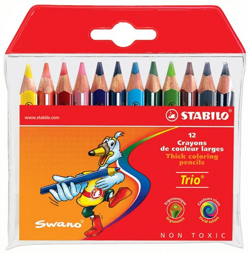 Stabilo proizvodi olovke s tri lica, prikladno je držati ih u rukama. Temelj linije je skraćena dječja garnitura s debelim škriljevcem. Mali dečki vole ostavljati široke svijetle crte na papiru, iako s takvim olovkama ne možete stvarati remek-djela. Vodiči su mekani, lako naoštreni i ne lome se. Često se preporučuju umjesto Mapeda, što ćemo pogledati malo više, jer ima više boja kože. Međutim, olovke od škriljevca u jednom setu mogu se razlikovati u mekoći, pokazujući različite rezultate na papiru. Ali paleta boja je ispravno napravljena, postoje sve nijanse.