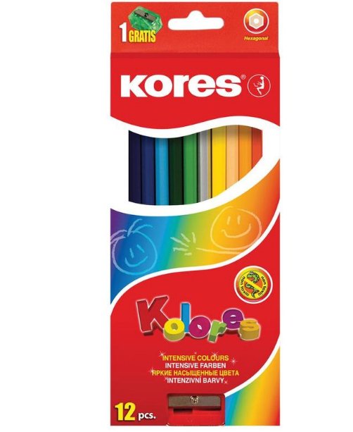 Kores je poznat po bistrim svijetlim bojama. Da bi se postigao dobar rezultat nije potrebno kliknuti na olovku, ruka se ne umara. Tvrtka proizvodi bilateralne komplete koji su prikladni za odlazak u školu i čišćenje. Obojene olovke za djecu imaju trokutasti oblik za bolju udobnost. Olovka od škriljevca ispravno je zalijepljena, ne razbija se ni kad padne. Većini setova dodana je oštrica, jer mnoge olovke imaju nestandardne veličine. Svaka boja može se potpisati samostalno. Iako roditelji kažu da za dječju kreativnost postoje jeftinije opcije. No, ljubavnici vole omjer cijene i kvalitete.