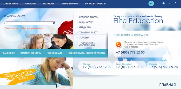 Elite Education ima 100 iskusnih zaposlenika, od kojih mnogi imaju napredne stupnjeve. Narudžba se obrađuje u roku od nekoliko sati, klijent može izravno komunicirati s autorom ili postaviti pitanja upravitelju. Avansna uplata je 30% - niža od one u konkurenciji. Sudeći prema primjeni na stranici, jedinstvenost doseže 90%, što je teško postići u tezama. Prosječni trošak iznosi 6.400 rubalja za 25 stranica, a stalni kupci imaju pravo na 5% popusta. Posebna pozornost posvećena je dijelu s primjerima: tvrtka je izložila nekoliko radova dostupnih za procjenu kvalitete. Samo ovdje možete platiti narudžbu u dijelovima, razmjerno količini izvedene.