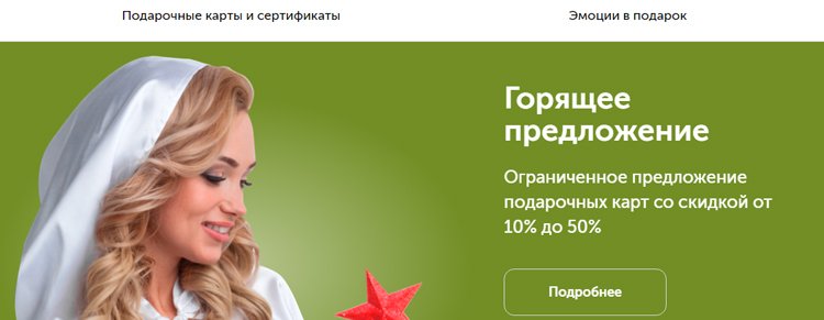 Tvrtka obrađuje prijave od 10 do 19 sati, ne radi nedjeljom. U ugovoru se navodi da se organizator obvezuje pružiti uslugu u roku od tjedan dana nakon aktivacije. Tu je ugodna prilika da biste dobili drugi certifikat besplatno kada naručivanje od 5 tisuća rubalja. Stranica ima mnogo promocija, popusta do 30%. Kupci vole izbor za svaki ukus: postoje ekstremni programi, pomlađivanje, zabava, pa čak i djeca. Povratne informacije su uglavnom pozitivne, uz samo nekoliko komentara o kašnjenju u isporuci.