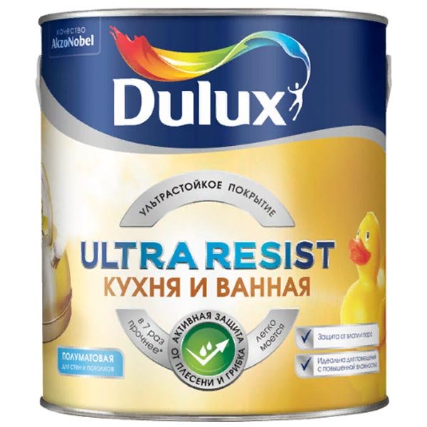 Proizvođač nudi posebnu liniju materijala za bojenje za prostorije koje su sklone čestom zagađenju ili održavaju visoku razinu vlage. Nevjerojatno otporna serija Ultra Resist štitit će zidove i stropove od raznih utjecaja u uredima i dnevnim sobama, u dječjim sobama, kuhinjama i, naravno, u kupaonicama (određena soba je označena na limenki). Za kupaonicu, proizvođač nudi mat i polumatni premaz, što je vrlo ekonomično. Postoji manje od deset gotovih boja, ali možete sami stvoriti oko dvije tisuće boja i nijansi. Boja štiti od plijesni i, prema navodima proizvođača, odbija prljavštinu koja omogućuje jednostavnu njegu premaza.