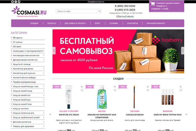 Prilično mlada internetska trgovina COSMASI, otvorena 2015. godine, brzo je stekla popularnost i postala jedna od najtraženijih od mnogih ljubitelja korejske kozmetike. U katalogu možete pronaći i "promovirane" marke i manje poznate marke koje su prilično rijetko zastupljene na ruskom tržištu. Tvrtka je ljubomorna na svoj ugled, te stoga nudi samo originalne proizvode od službenih distributera, s certifikatima kvalitete i prihvatljivim rokom trajanja.