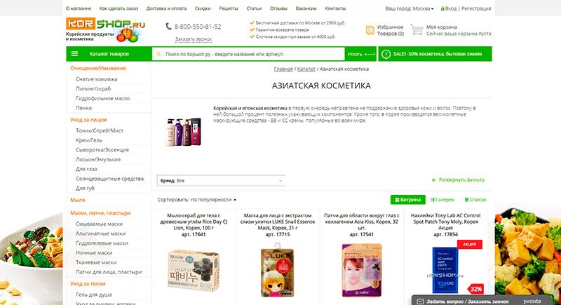 Mjesto s kozmetikom i egzotičnom hranom iz AzijeWeb stranica: korshop.ru
