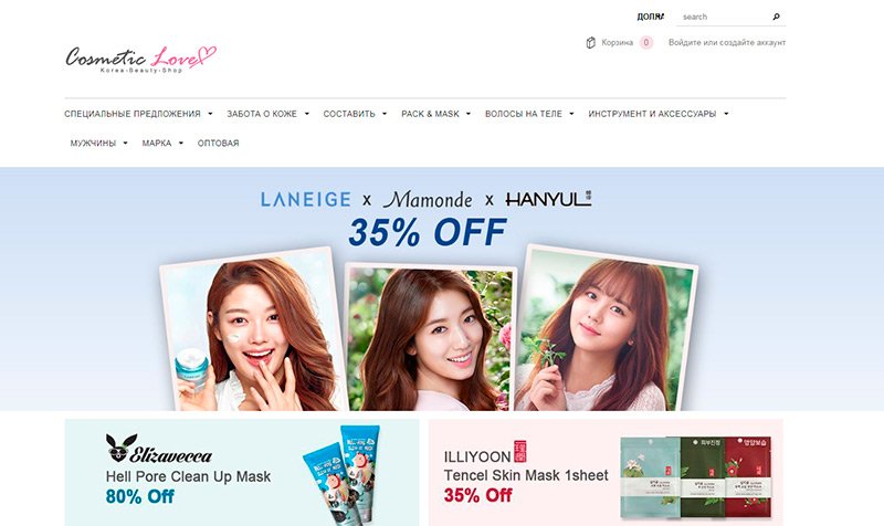Još jedna popularna korejska internetska trgovina prirodne kozmetike s dostavom u Rusiju. Od glavnih prednosti - niska cijena, od "minusa" - duge isporuke. Stranica, kako se i očekivalo, je na engleskom jeziku, nema ruske verzije, pa ćete opet morati prevesti "ručno" (ili "podići" svoje znanje stranog jezika). Ipak, kupci su visoko cijenili suradnju s tvrtkom Cosmetic Love i zaljubili se u resurs za raznoliku ponudu, jamstvo autentičnosti i veliki broj popusta na različite kategorije roba.