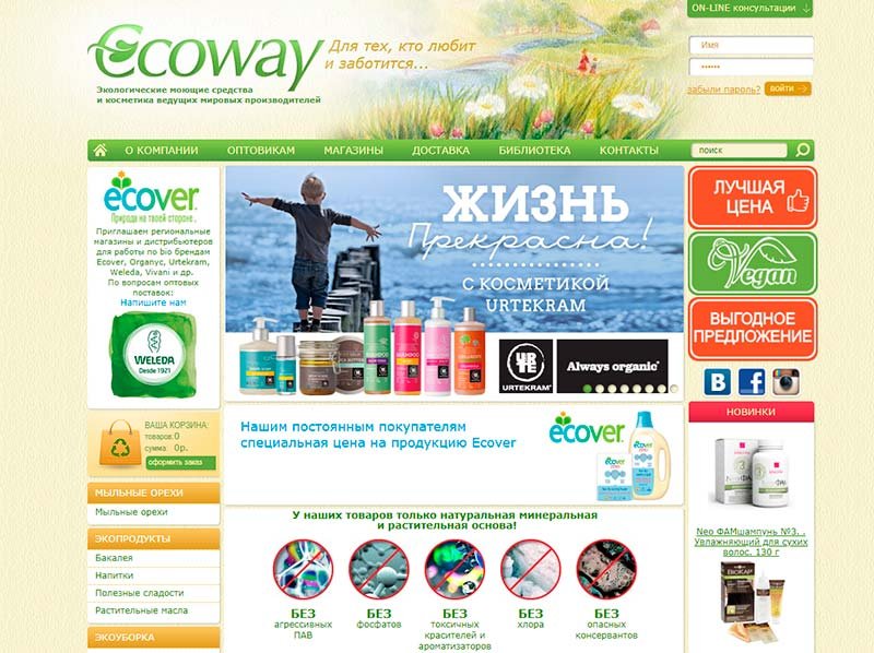 Internetska trgovina Ecoway se ne postavlja samo kao platforma za online prodaju ekološki prihvatljivih proizvoda za ljepotu i zdravlje, već i kao resurs s vlastitim društvenim položajem. Ovaj projekt su stvorili ljudi koji ozbiljno razmišljaju o budućnosti planeta. Stoga su gotovo svi proizvodi iz kataloga napravljeni od biorazgradivih materijala koji nisu štetni za prirodu. Budući da su većina zaposlenika u tvrtki mladi roditelji, na licu mjesta postoje mnoge ponude za bebe, uključujući prirodnu kozmetiku za njegu osjetljive dječje kože i kose.