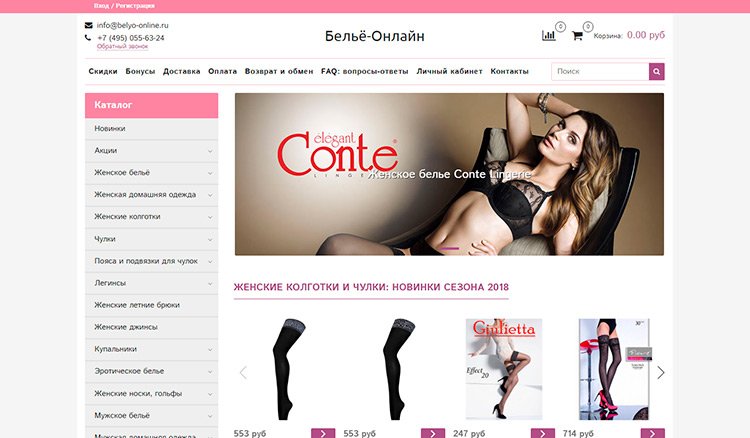 Pregled ćemo započeti iz online trgovine „Belle-On-line“, koja sadrži veliki broj modela donjeg rublja, senzualnih setova, čarapa, udobnih ogrtača, pidžama i drugih vrsta kućnog tekstila. Praktična podjela na kategorije, ugodan dizajn i detaljne informacije o svim pitanjima čine korištenje resursa prikladnim i za neiskusne kupce. Izbor stvarnih recenzija omogućuje vam objektivniju procjenu nijansi stranice.