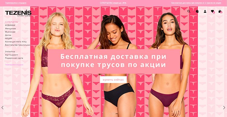 Katalog trgovine stalno se ažurira, nudeći svojim kupcima atraktivne i kvalitetne proizvode koji zadovoljavaju najnovije trendove na tržištu donjeg rublja. Možete naručiti proizvode na ru.tezenis.com bez registracije, ali mi još uvijek preporučamo da prođete kroz postupak, jer to će vam omogućiti pristup različitim promocijama i posebnim ponudama "za svoje".