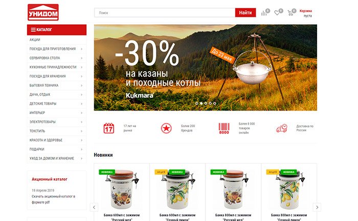 Hipermarket "Unidom" je razvijena mreža stacionarnih trgovačkih centara smještenih u južnoj Rusiji. Tvrtka prodaje razne vrste roba za dom i vrt, među kojima je stolno posuđe na prvom mjestu. Od 2010, brand je samouvjereno ušao na tržište virtualne veleprodaje i maloprodaje otvaranjem svoje online trgovine unidom-shop.ru za posjetitelje.