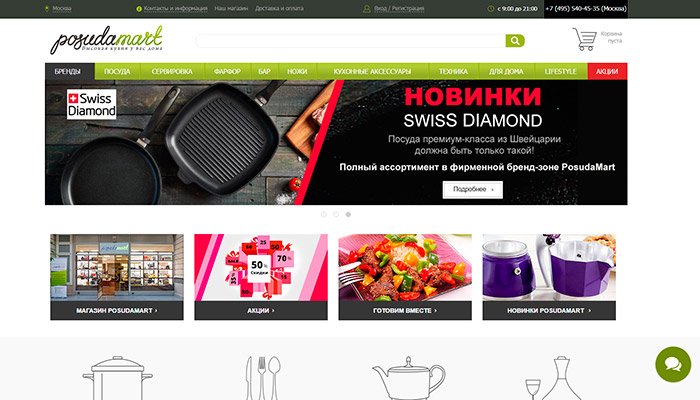 Sljedeća internetska trgovina koja prodaje jela i predmete kućanstva privlači pozornost kupaca prvenstveno velikim brojem popusta na različite kategorije roba. Ovaj je resurs posebno cijenjen od strane ekonomskih kućanica koje više vole primati kvalitetne kućanske predmete bez preplate za “glasno” ime marke.