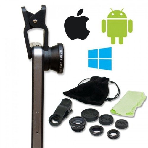 Fotografija je popularan hobi, ali, nažalost, kvalitetna kamera nije uvijek pri ruci. U takvoj situaciji, ideja je sjajna - skup izmjenjivih objektiva za pametni telefon. Uključuje tri objektiva koji su pričvršćeni posebnom kopčom, torbica za skladištenje i tkanina za njegu.