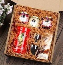 Idete li posjetiti ljude koji imaju osjetljiv okus u hrani i razumiju neobičnu kombinaciju proizvoda? Zatim, set koji se sastoji od velike staklenke talijanske kave Lucaffe Classic i tri vrste prirodnog suflea od meda iz Peronija zasigurno će im dati puno pozitivnih emocija. Osim toga, poklon set sadrži dvije dizajnerske čaše za espresso (izrađene od čelika) i stoljetnu čokoladnu šalicu ručno (s visokim sadržajem kakao zrna). Svi korišteni proizvodi zadovoljavaju najviše standarde kvalitete, ekološki su sigurni i imaju ispravan rok trajanja i skladištenje. Ukusan, lijep i najvažniji korisni dar upakiran je u kartonsku kutiju s logotipom. Dimenzije –25.0x27.0x10.5 (cm).