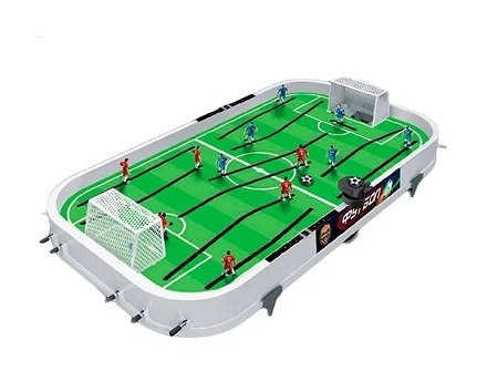 Prekrasno novogodišnje iznenađenje, koje će pomoći vašem djetetu da poboljša koordinaciju i brzinu reakcije, kao i da ga nauči razvijati strategiju i dati neusporediv osjećaj radosti od pobjede nad protivnikom u fer igri. Stolni nogomet iz ABtoysa namijenjen je djeci od 4 do 5 godina, dizajniran za dva igrača i ima sve potrebne atribute svojstvene kolegi "za odrasle". Komplet uključuje igralište s realističnim oznakama, prijenosna vrata i set igrača koji se montiraju na kućište pomoću posebnih vodiča.Za ispravno fiksiranje rezultata osiguran je mehanički brojač točaka. U proizvodnji se koristi visokokvalitetna, ekološki sigurna plastika, dopunjena metalnim dijelovima.