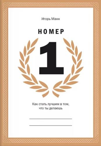 Igor Mann je jedinstvena osobnost, izvrstan autor, motivirajući na stvarne akcije. U svojoj knjizi o samorazvoju "Broj 1", on, zajedno s vama, izrađuje detaljan plan za dostizanje određenih vrhunaca. To se postiže popunjavanjem posebnih tablica na različite teme: razvoj vještina, imidž, snage i slabosti, itd. Knjiga je i radna bilježnica, koja ispunjava čitaoca po prioritetima i razrađuje ključne trenutke svoga života u svojoj glavi.