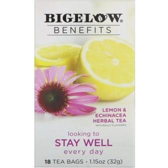 Prednosti je biljni čaj s limunom i ehinaceom iz Bigelowa za dobro zdravlje. Prirodni sastav s korisnim eteričnim uljima, smolama i antioksidansima ne samo da jača imunološki sustav, već pomaže u obnovi metabolizma. Glavne komponente: echinacea, limunska trava, kukovi i bazga. Ne sadrži GMO, šećer i gluten. Jedno pakiranje sadrži 18 vrećica čaja.