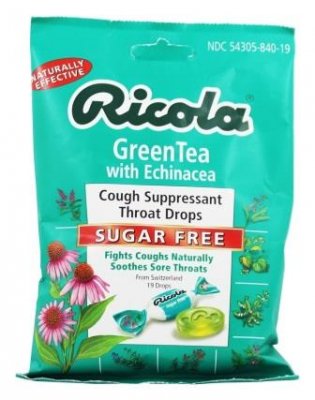 Zeleni čaj s echinaceom u Ricola tabletama je najbolji izbor za kašalj i upalu grla. Ne sadrži šećer, ali zbog ugrađivanja limunske kiseline, paprene metvice i mješavine alpskog bilja ima vrlo ugodan okus. Jedno od najučinkovitijih načina je uklanjanje kašlja za 5-7 minuta i ublažavanje upale grla. Sprječava gubitak glasa. Izvrsno rješenje za dugi i kronični kašalj.