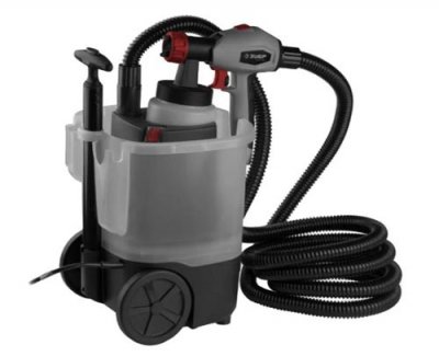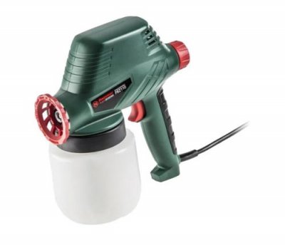 Proračunska verzija pištolja za raspršivanje za visokokvalitetne boje, s velikim koracima podešavanja potrošnje materijala i velike snage ugrađenog električnog motora. 750 W je više nego dovoljno za brzo bojenje zidova i drugih podova, uz konstantno izbacivanje raspršene tekućine u volumenu do 800 mililitara. Važno je da viskoznost materijala ne prelazi 100 din / cm2 - inače može doći do začepljenja mlaznica.